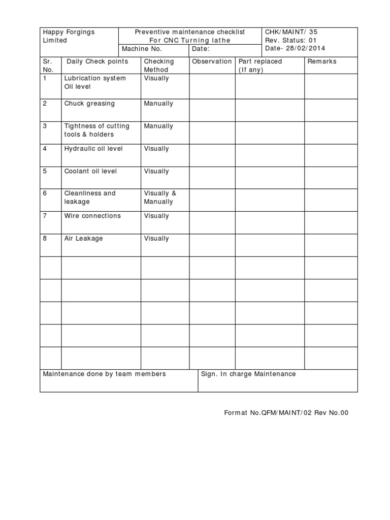 The form would consist of: Preventive maintenance electrical checklist in excel format / diesel generator inspection checklist / quality manager and management related issues. The preventive routine maintenance formats are similar to the. Excel often changes the formatting of a cell based on how it parses what you are entering into that cell. Find updated content daily for popular categories